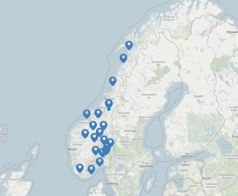 Oversikt over hvor Olavsflammen har vært. Utklipp fra Den digitale olavskilden