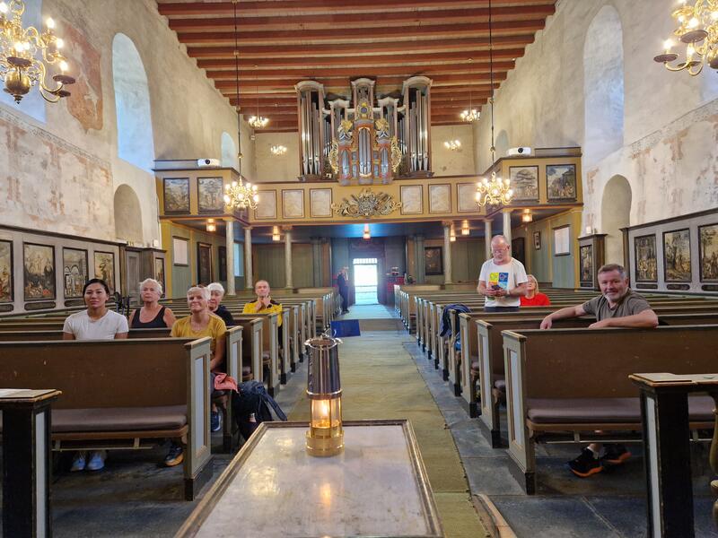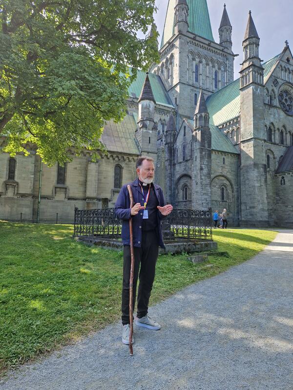 Stiklestad er et slagsted og symbolsted med over 1000 år med historie. Turleder og museumsformidler Lars Børre Hallem tok med pilegrimene til Olavshaugen hvor han formidla hovedtrekkene i historia til stedet, slaget på Stiklestad og Olav, og hvordan historia har blitt brukt av ulike aktører til ulike tider. Dette var en del av det faglige programmet i vandringa som tok utgangspunkt i temaene kraft og tillitt. Historia, historiebruken og formidlinga til Lars Børre la grunnlaget for mange gode samtaler på vandringa mot Nidaros.
