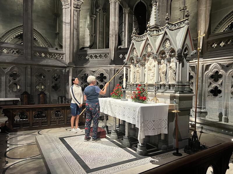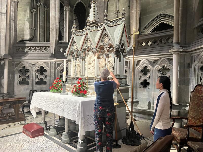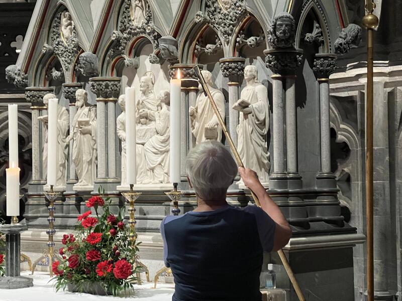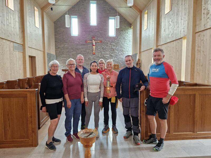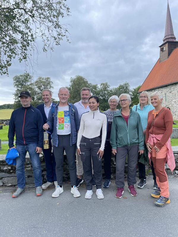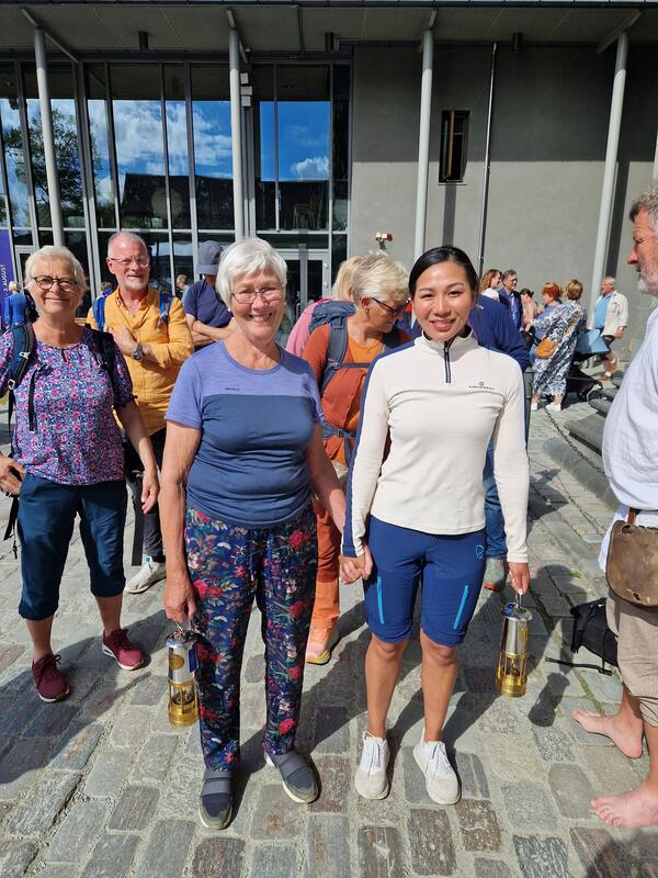 Biskopen i Nidaros, Herborg Finnset, overrakte Olavsflammen til vandrerne med velsignelse og ønske om god vandring mot Nidaros.